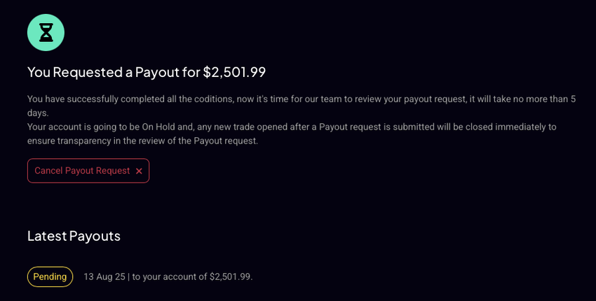 Add Disclaimer Footer to Payout Section and Challenge Status Section - Trade Closure Policy