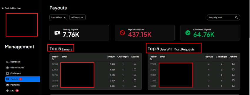 You can now instantly view the Top 5 largest payouts, allowing you to identify high-performing traders and monitor significant capital distributions at a glance.
